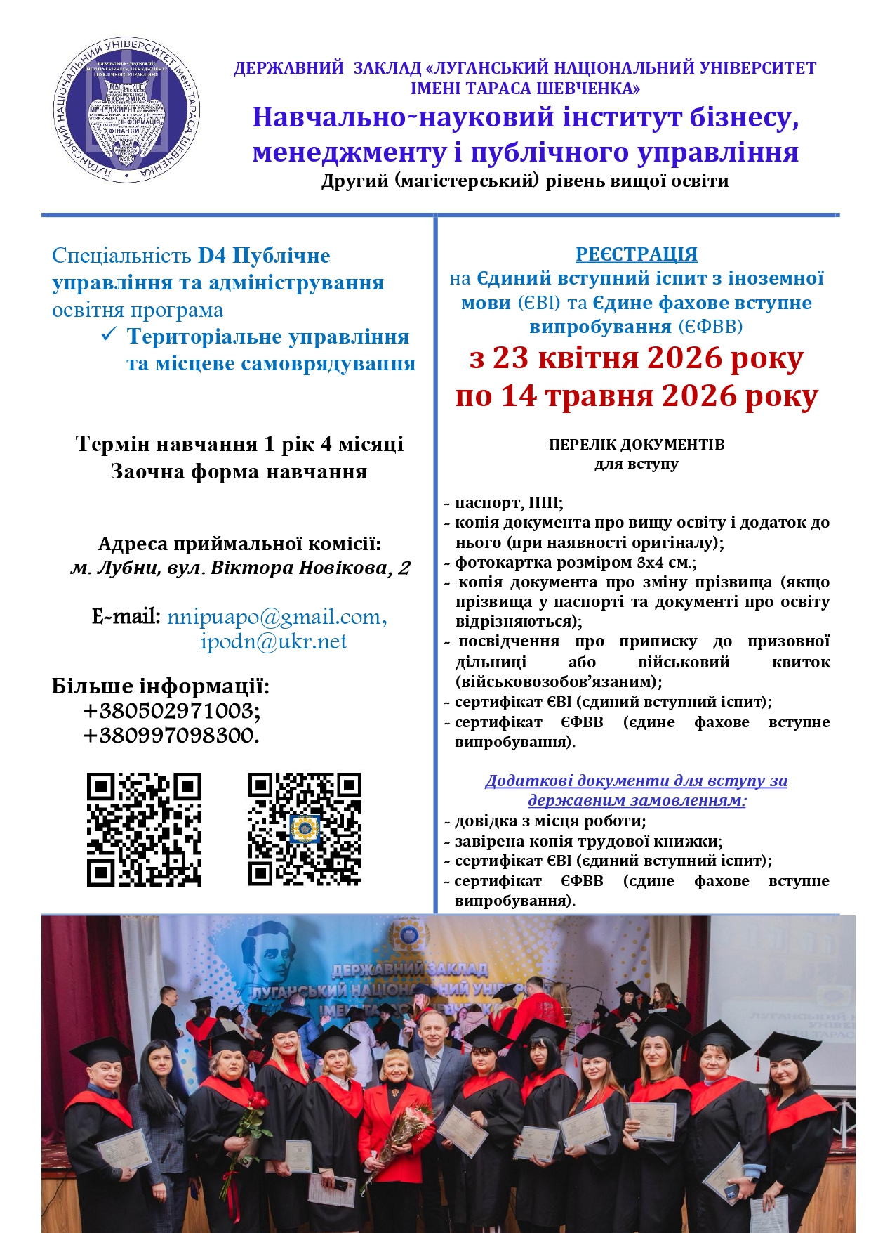 Обирай магістратуру за спеціальністю «Публічне управління та адміністрування» та освітню програму «Територіальне управління та місцеве самоврядування»